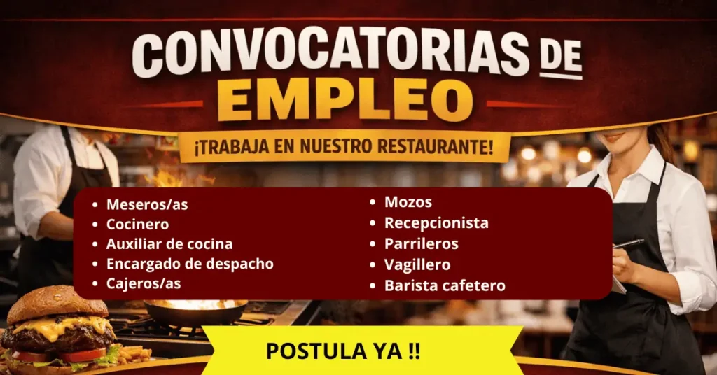 Descubre seis vacantes en restaurantes con funciones, requisitos y beneficios. Oportunidades laborales ideales para crecer profesionalmente.