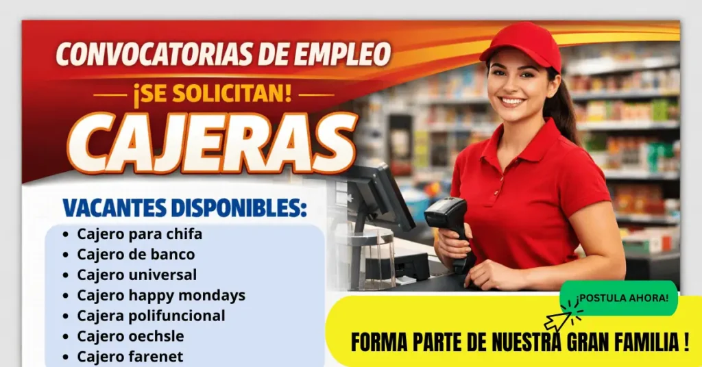 Vacantes para cajeras en empresas reconocidas, con funciones claras, requisitos accesibles y beneficios competitivos, ideales para quienes buscan empleo estable y oportunidades de crecimiento.
