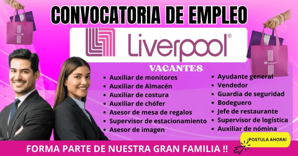 Vacantes en Liverpool con oportunidades laborales . Conoce funciones, requisitos y beneficios de empleos estables con crecimiento profesional.