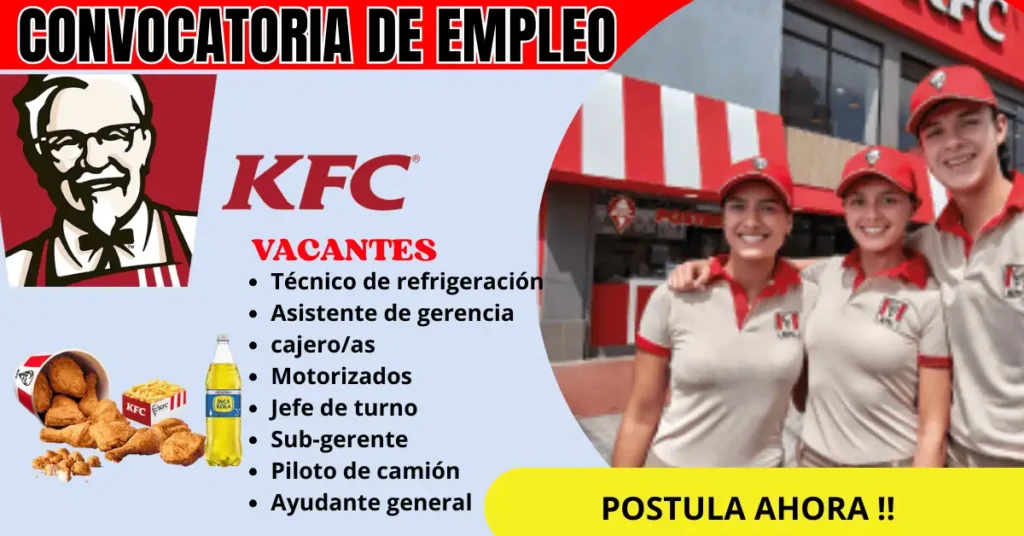 KFC ofrece vacantes laborales con funciones, requisitos y beneficios, ideales para quienes buscan estabilidad, crecimiento profesional .