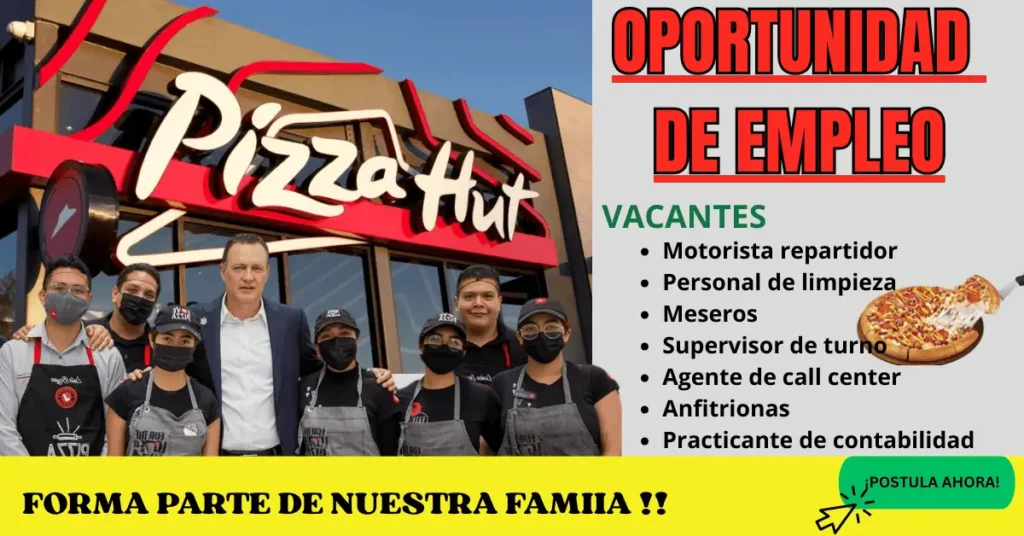 Vacantes en Pizza Hut con soportunidades laborales que incluyen funciones, requisitos,beneficios, ideales para quienes buscan estabilidad y crecimiento profesional.